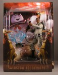 Articulation: Winston has a ball jointed neck, ball and hinge shoulders, elbows and wrists, H-hinge hips, hinges at the knees and ankles, and swivels at the waist, lower thighs, and the top of the boots. Something about the H-hinge hips on these figures makes them looks slightly unnatural in bent poses, as if the hips were a bit lower on the body than they should be.