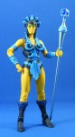 Articulation: Since she shares Teela’s body, Evil-lyn also shares her articulation. That means she’s the third figure in this line who can hold a sword in two hands up and behind her head (Adora can’t get her arms together quite as high up, owing to her bicep articulation being higher up on the arm; Teela, the Goddess and Evil-lyn have the armlets to provide an articulation point much lower on the bicep–and kudos to Mattel and the Horsemen for realizing it was better to put it at the bottom rather than the top of the armlet).