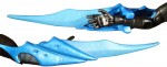 The flight wings are made from a semi-transparent plastic making it look like a real membranous wing, but are hard enough so they don’t bend in the package. The leading edge of the wings are sculpted with segments furthering the insect traits of the suit.
