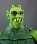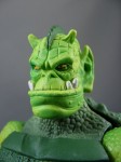The figure’s legs and arms are molded from a pale green plastic that closely matches the vintage colors. While I like the texture of the plastic, it’s a bit soft, which means his left hand won’t hold his (axe? sword? what is that thing?) very tightly if your display location is anywhere above sixty degrees.