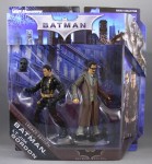 Articulation: Both figures have a ball and socket neck; ball and hinge shoulders; hinges at the elbows, knees, abdomen, and ankles; and swivels at the biceps, wrists, thighs, and waist. The waist on Bruce Wayne is restricted by the gear.
