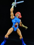 Articulation: Although his package says he features 18 points of articulation, he actually features much more. Since a ball joint allows it to move on both the X and Y axis, you have to count that as two points of articulation. And given that, Lion-O actually has about 30 points of articulation: Ball jointed head, ball jointed shoulders, bicep rotators, single elbows, ball jointed wrists, left to right mid-torso joint, torso ball joint (allows waist to be turned and also allows for an ab crunch), ball joint-like hips, thigh rotators, double knees, calf rotators (at the boots), pin and disc ankle joints, as well as ankle rockers.
