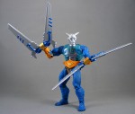 Overall, Cy-Chop is a completely bizarre action figure. As much as I like him in concept and his big ridiculous blades, his strange slapped-together sculpt and awful paint don’t hold up to close examination. I want to reiterate how annoying the overall orange-and-teal color scheme is; this toy might have looked amazing with different colors, much like the similarly and rightfully maligned Sir Laser Lot. He actually looks pretty terrific displayed alongside the other Horde toys, something I wasn’t expecting especially given his nonsensical golden Horde logo, and I’ve had a lot of fun playing with him – perhaps more fun than a lot of MOTUC recently – but this doesn’t make his flaws any less inexcusable. Neither the best nor the worst in the MOTUC line, he’s dead average, right in the middle.