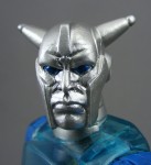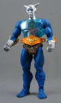 His sculpt and paint, is…well, let’s start with the bad. The absolute worst part of the figure is the head, which features a reasonably interesting knight-helmeted-martian sculpt complimented by flat, boring silver paint that has no highlights or detail. It’s crap. If this thing had some kind of screaming skull head, or had been painted to look more Frankenstein and less T-1000, or had ANYTHING INTERESTING GOING ON it would have been great – instead, it looks like an unfinished prototype. For this figure – one of only six in the “special” 30th Anniversary line – for the premium cost with shipping, this is UNFORGIVABLE. Only the eyes are painted, and they look like garbage. Why blue instead of red? Why the predominance of blue, just like Sir Laser-Lot? WHY DOES HE NOT HAVE AN AWESOME SCREAMING SKULL INSTEAD, MAYBE ONE THAT IS ON FIRE?! HOW AWESOME WOULD THAT HAVE BEEN?! Regardless, his plain silver head matches his plain silver neck which matches NOTHING else on his body, making him even more of a mismatched super-strange mess.