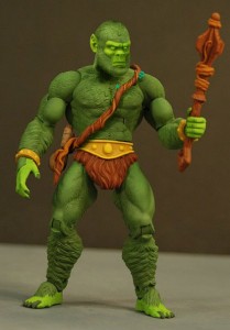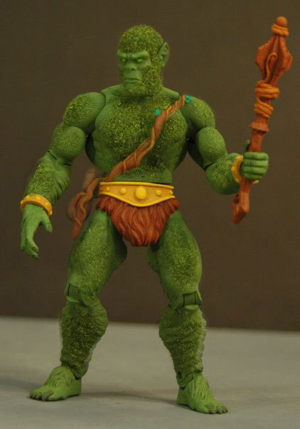 Thanks to so many fans for chiming in over the weekend on the Moss Man issue. As you know, those damn laws of physics just won’t let the flocking work on a figure that is so articulated. We did see some cool fan photo-shopped images of a partial flocked Moss Man and a repainted Moss Man with more paint ops to the face and hands. Both are interesting options. Remember these are fan images, not official images from Mattel of actual product.
