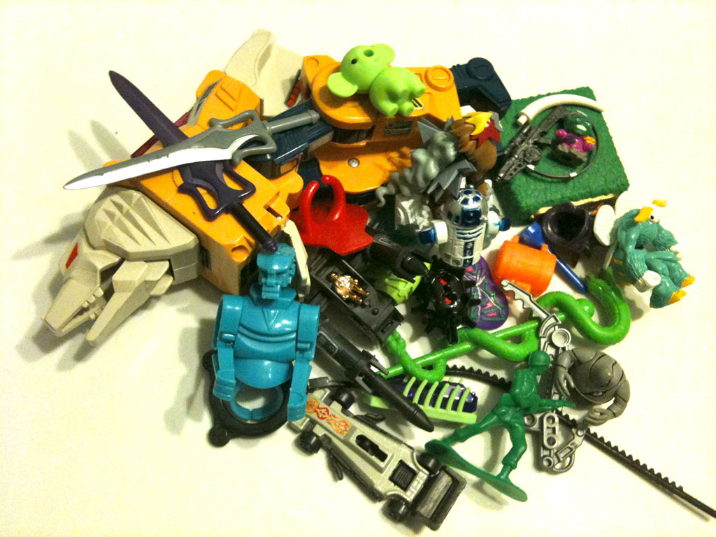 The one from Poester Daniel B. and his boys definitely captured the “odds and ends” spirit with a lot of strange little toys. What is that little chrome dude in the black chair from? Zoids? I want one of those.