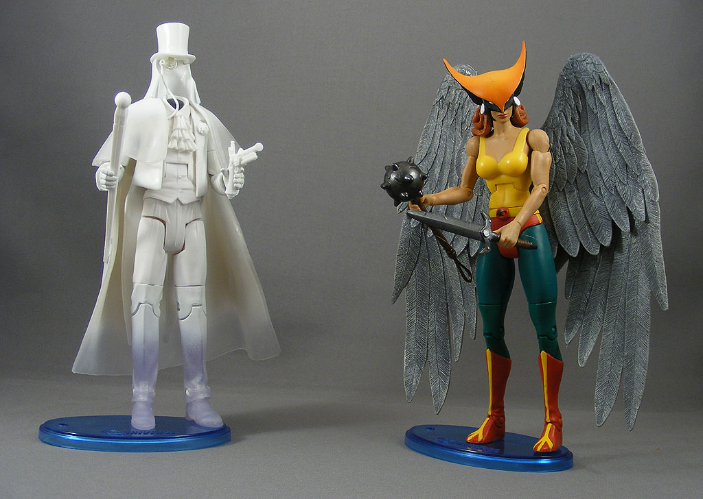 Found in a Wal-Mart. I am well-versed enough in comic lore to know that the purple bird lady is an X-Men foe, though I cannot recall her name. Two things: One, this is pretty zen in its own way–I would imagine that the bird lady was a hot figure back in her day (thirteen or so years ago), and I (sadly) know this is the work of one of our fellow collectors as she is in absolutely pristine condition; and two, it amazes me that the person who returned it included at least part of Hawkgirl’s weapons (the mace may actually be broken) and the Gentleman Ghost figure itself! They must have really, really wanted that Hawkgirl–oddly enough, I had picked up a single-carded Hawkgirl and left one more on the shelf at a Target literally across this street from this Wal-Mart about two months ago!